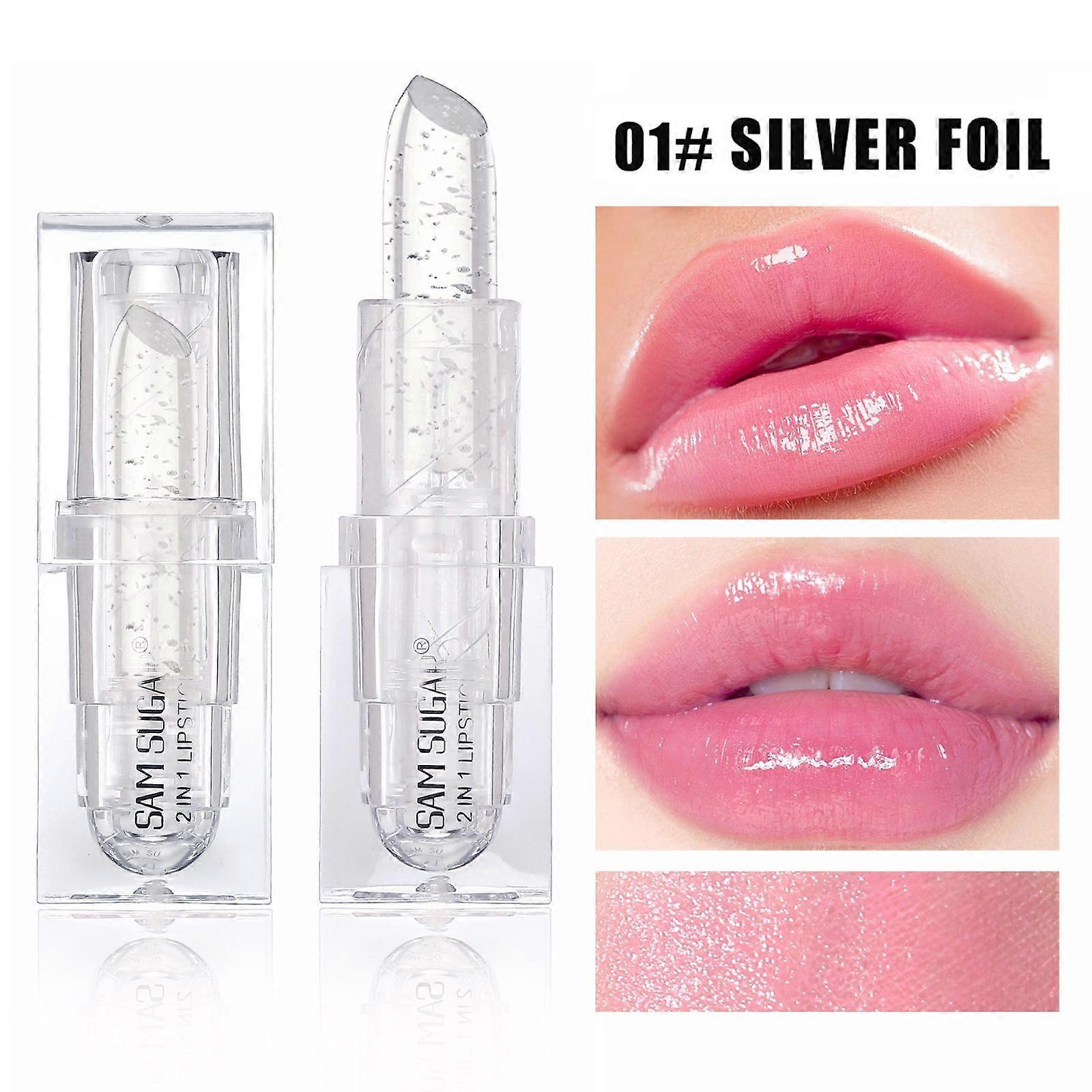 Clear Lipstick Color Changing Gold Foil Lipsticks with Transferproof and Retractable Pink Moisturizing Jelly Lip Stick for Women and Gift