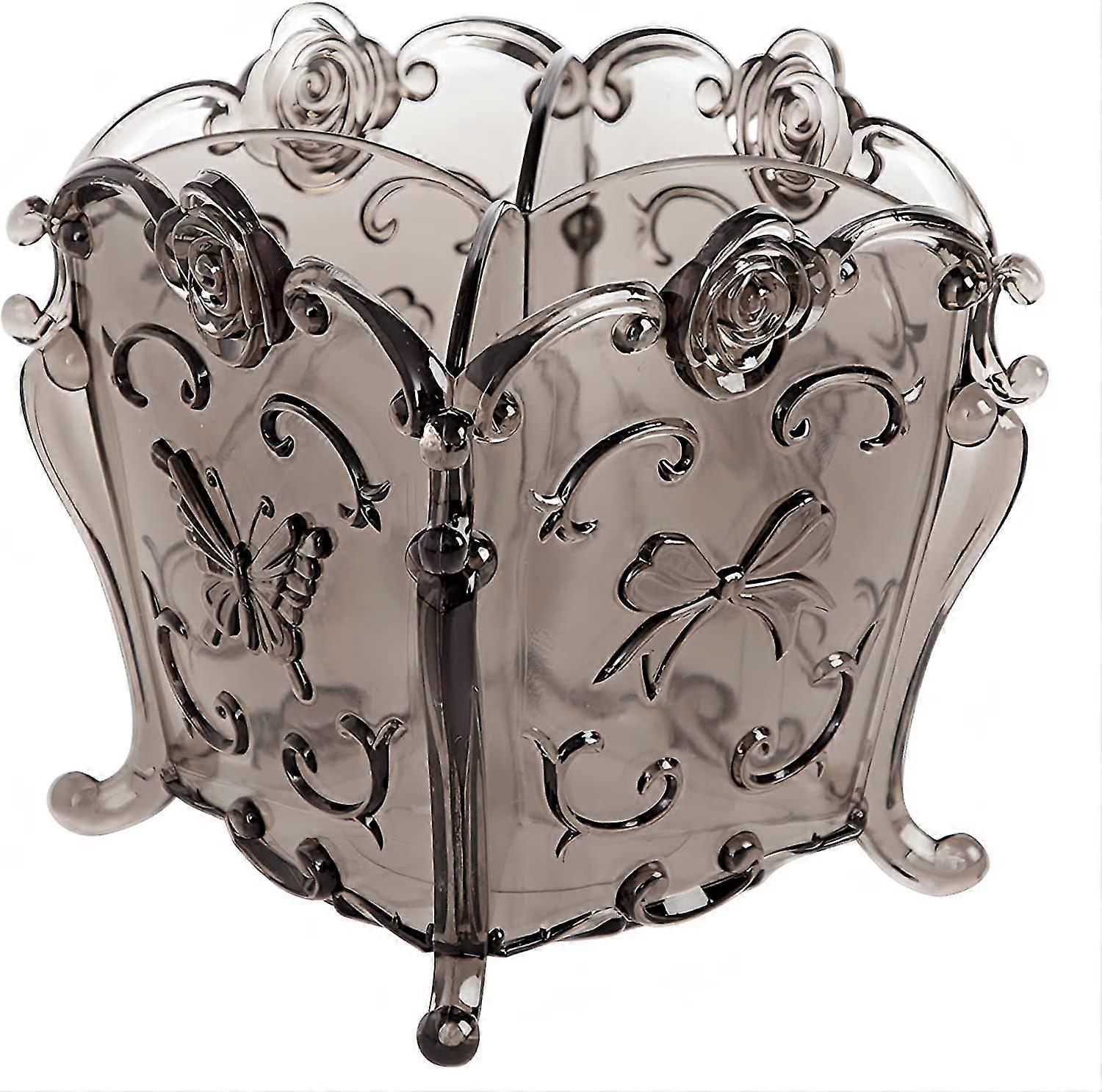 Clear Carved Floral Vanity Desk Organizer With 4 Slots (black)