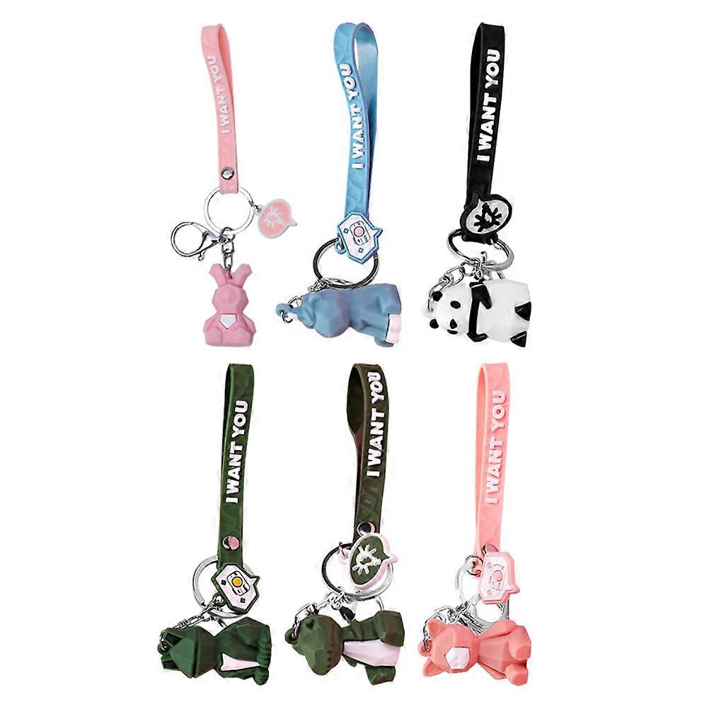 Creative Animal Keyring Pendant 6Pcs 3D Design Keys Bag Decorative Children Gift Giving
