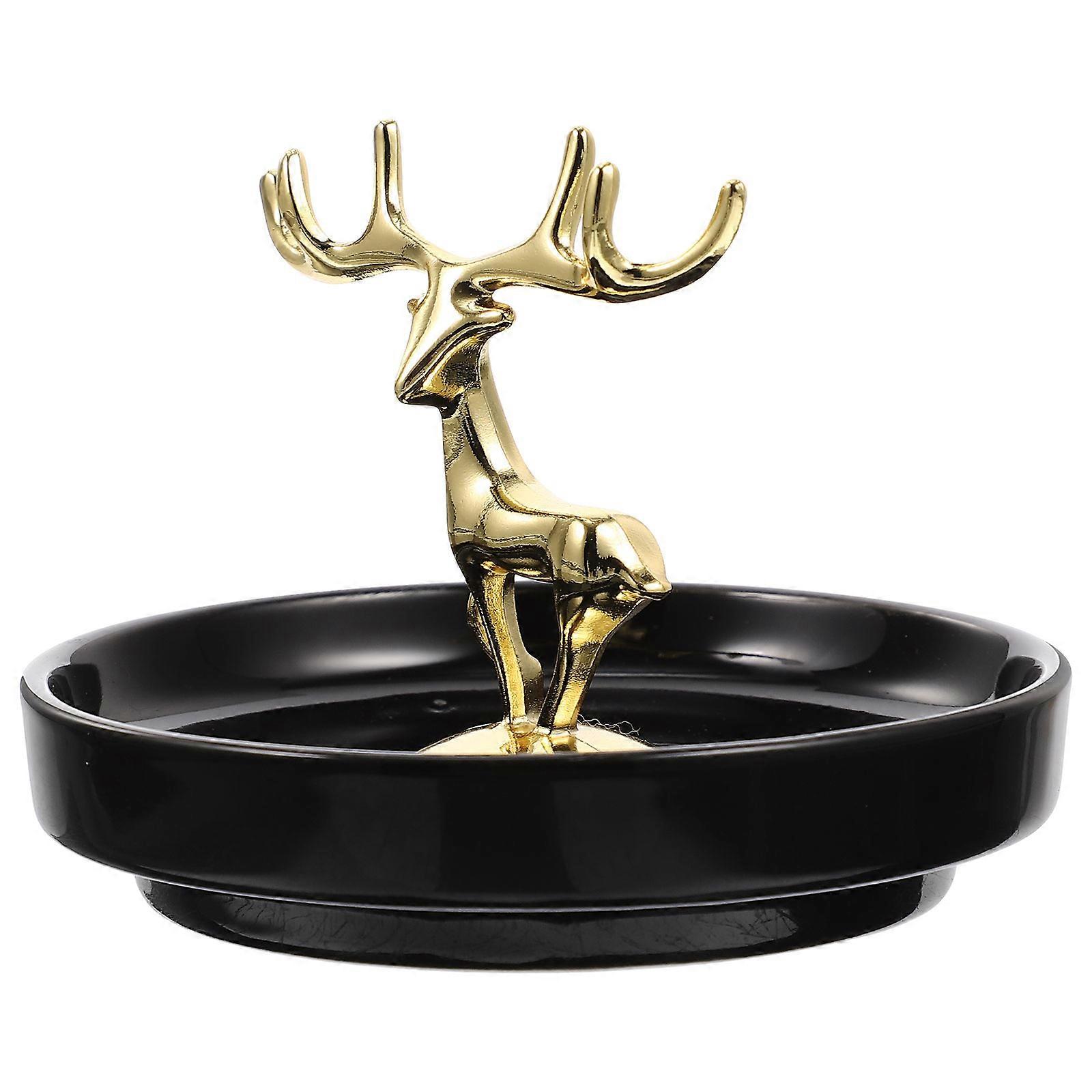 Creative Elk Desktop Ornament Trinket Tray Office Decor Jewelry Storage Round Shape Ceramic 1Pack