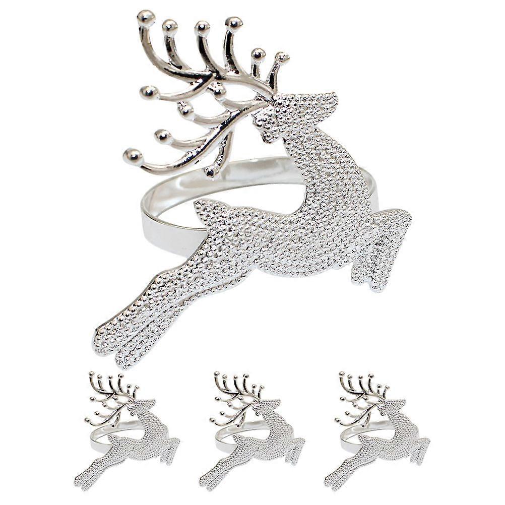 Creative Elk Napkin Buckles Dining Table Napkin Rings Elegant Christmas Party Decorative Alloy 4Pcs