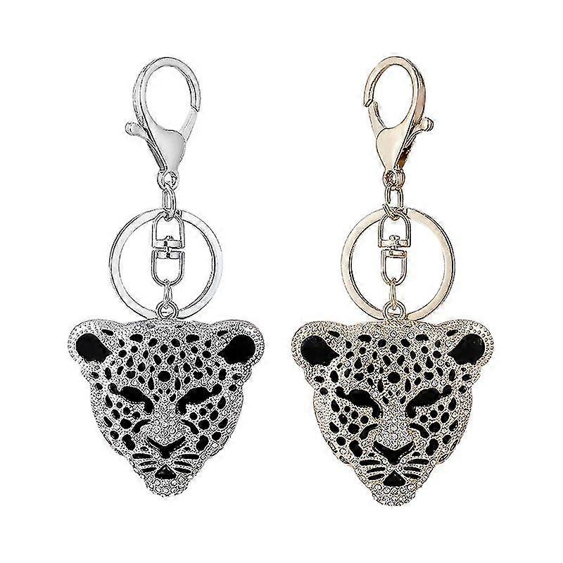 Creative Craft Small Gift Rhinestone Leopard Print Keychain, Inlaid Leopard Keychain Car Fashion Accessories Metal Animal Pendant Small Gift (2