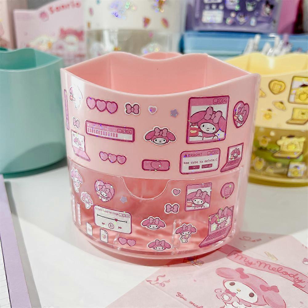 Creative Sanrio Rotatable Pen Holder Cinnamoroll Kuromi My Melody Desktop Multi-grid Stationery Storage Box Pen Holder High Quality
