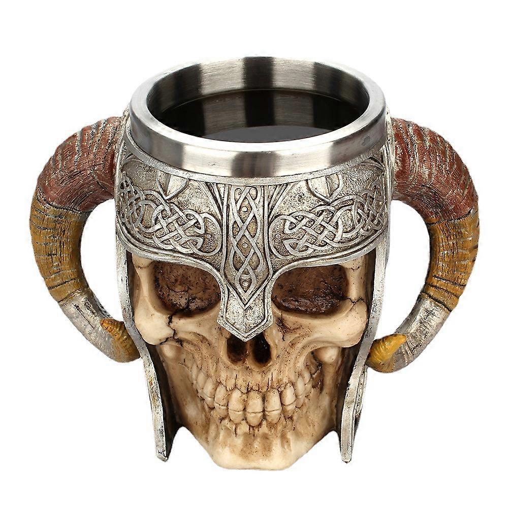 Creative Skeleton Knight Sheep Horn Resin Cup Double Sheep Horn Stainless Steel Drinking Cup Office Water Cup