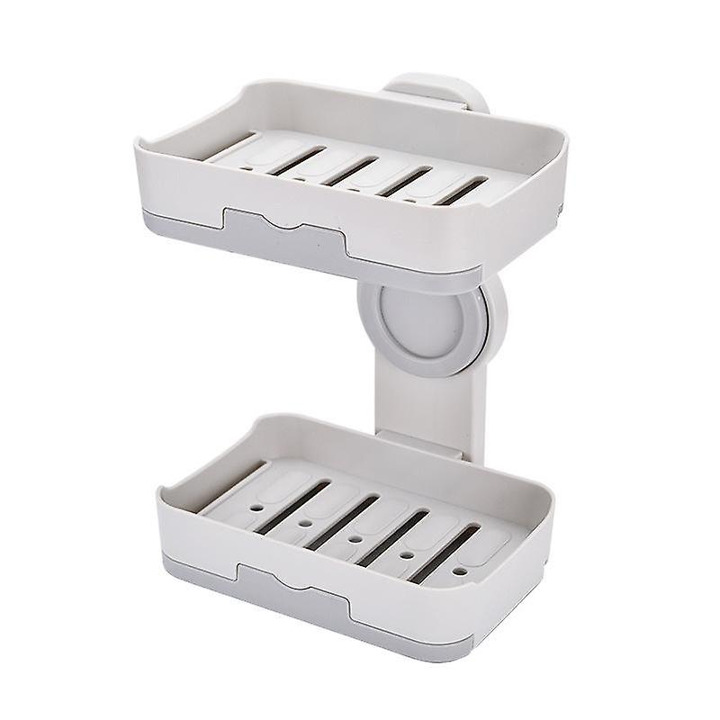 Creative Soap Dish Double Detachable Drainage Soap Dish Bathroom Non-porous Soap Rack (Gray, 12.2*8.
