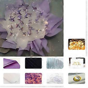 Features 1. Butterfly Bouquet Kit: 33 pieces, including 2 light strings, 8 pieces of packaging paper, 5 pieces of soft glass paper, 40 pieces of iron wire, 1 random card, 6 pieces of cotton paper, 33 butterflies, 1 ribbon, and 1 tape. 52 pieces of materials include 2 light strings, 8 pieces of packaging paper, 8 pieces of soft glass paper, 60 pieces of iron wire, 1 random card, 6 pieces of cotton paper, 52 butterflies, 1 ribbon, and 1 tape. 2. Design: The DIY butterfly bouquet features bright colors and unique design, ensuring a deep impression on the person you love. A bouquet adds romantic elegance to any room or occasion. 3. DIY Butterfly Bouquet: Made of high-quality silk, the vibrating double butterfly wings make the butterfly more realistic. Paired with LED light strings, it looks even more charming in the dim light of the night. 4. Forever Bouquet: The finished bouquet will become a thoughtful handmade gift. Full of love, bring surprises to important people, mothers, friends, and loved ones on birthdays, Thanksgiving, Christmas, and holidays. 5. Widely Used: Butterfly bouquets are suitable for wedding parties, birthday parties, butterfly role-playing, anniversaries, dances, Mother's Day, and more, providing you with unlimited artistic creative possibilities. Specification Material: ABS Color: Blue, Purple, Pink Size: 30 x 30 x 2 cm, Weight: 260 g, 300 g Package Include: 1x DIY Butterfly Bouquet
