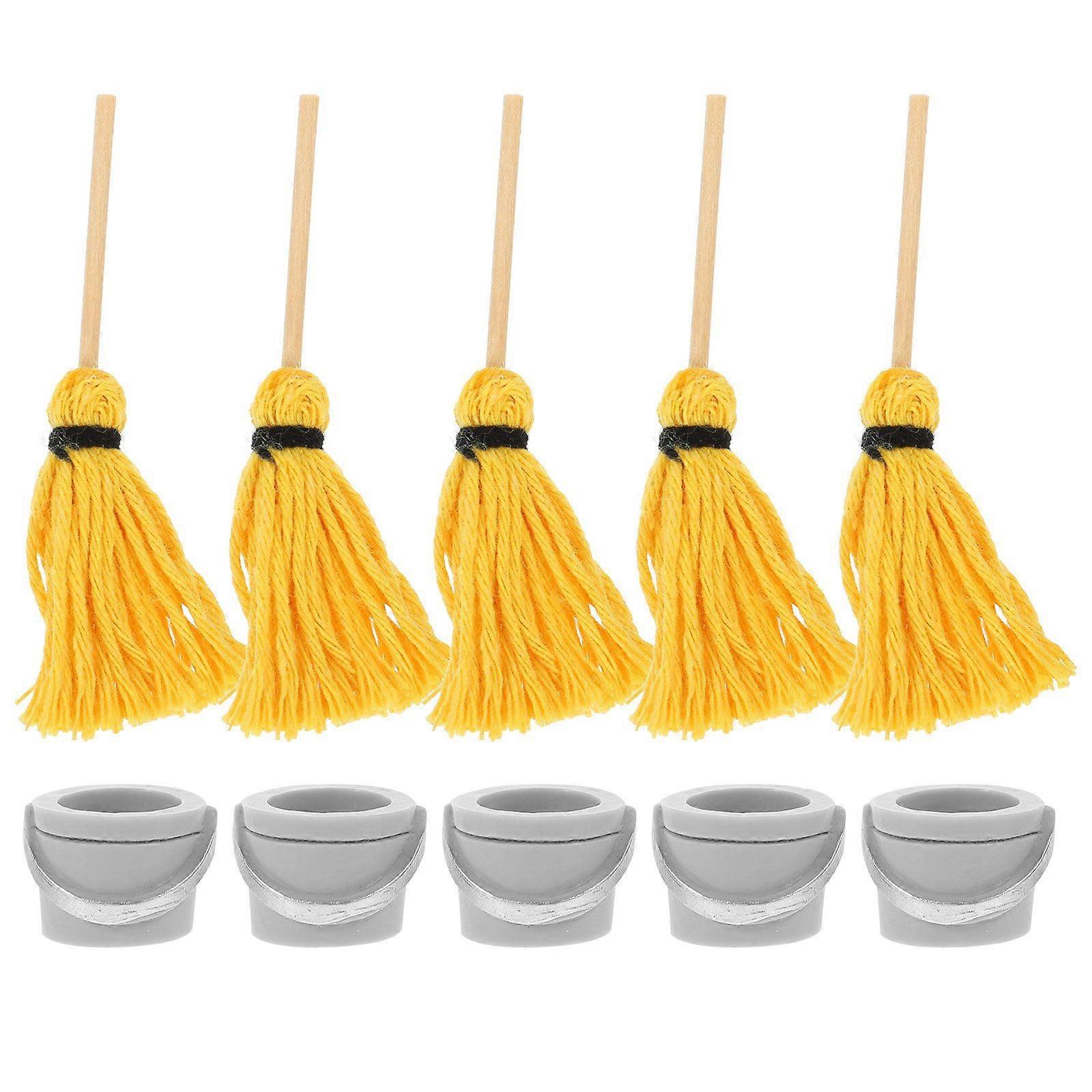 5 Sets of Creative Mini House Mop Bucket Decors Micro Cleaning Tool Model Ornaments (Random Color)