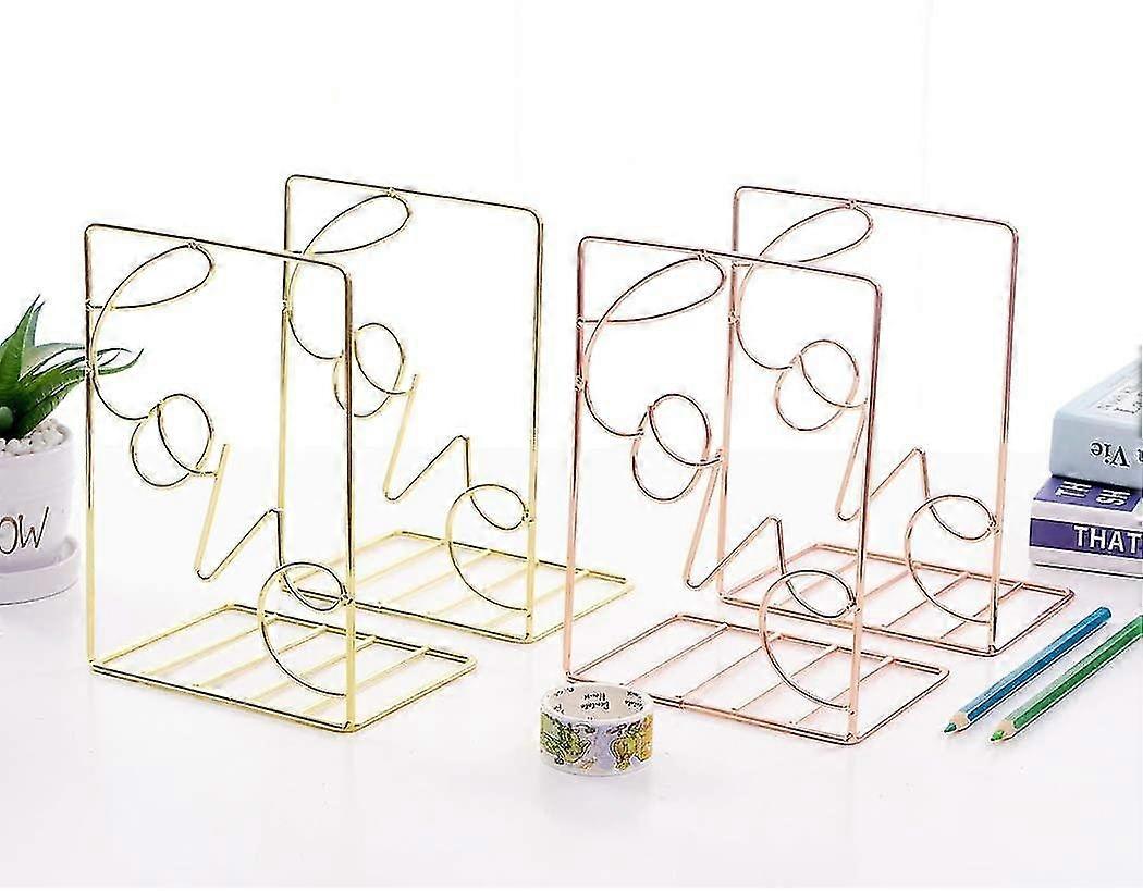 Creative Minimalist Style Bookends Metal Adjustable Books Holder Stand Book Rack Desk Bookend Love, Gold