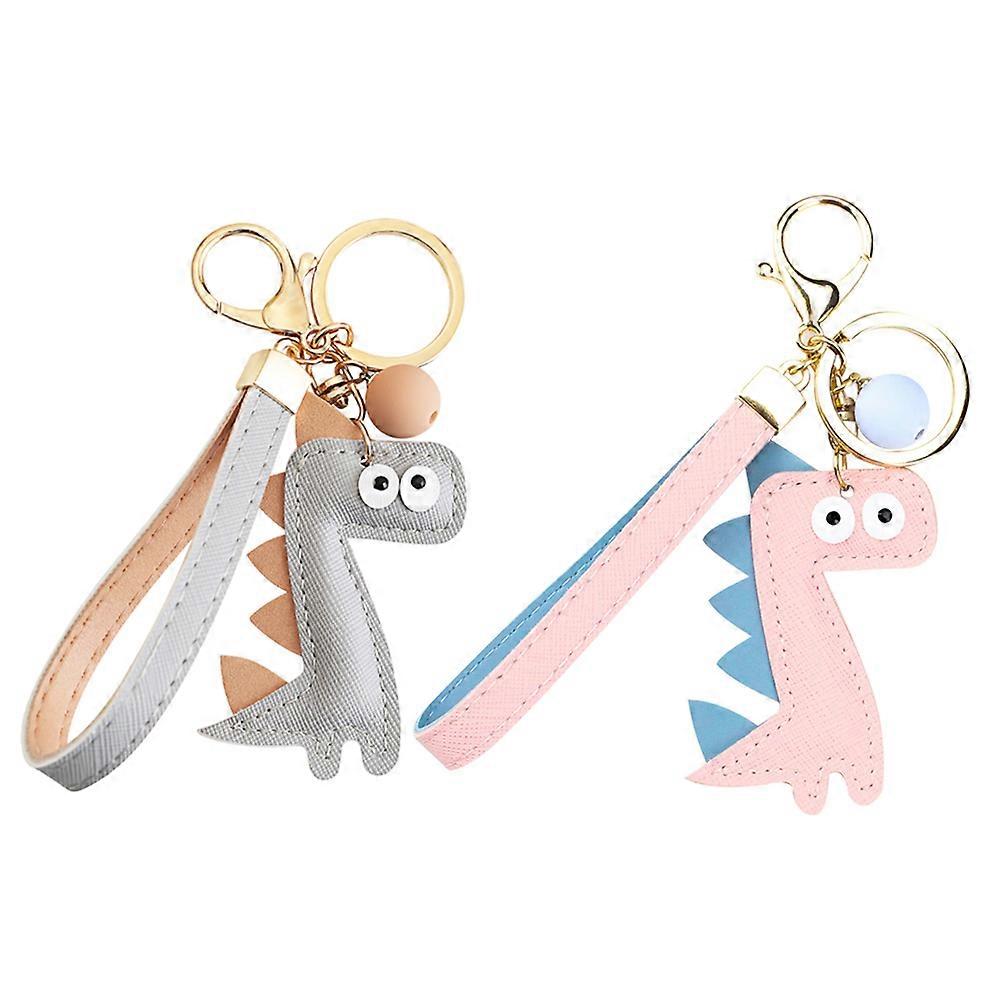 Creative Dinosaur-Shaped Keychain Cute Bag Pendant For Decoration Assorted Color Metal Keyring 2Pcs