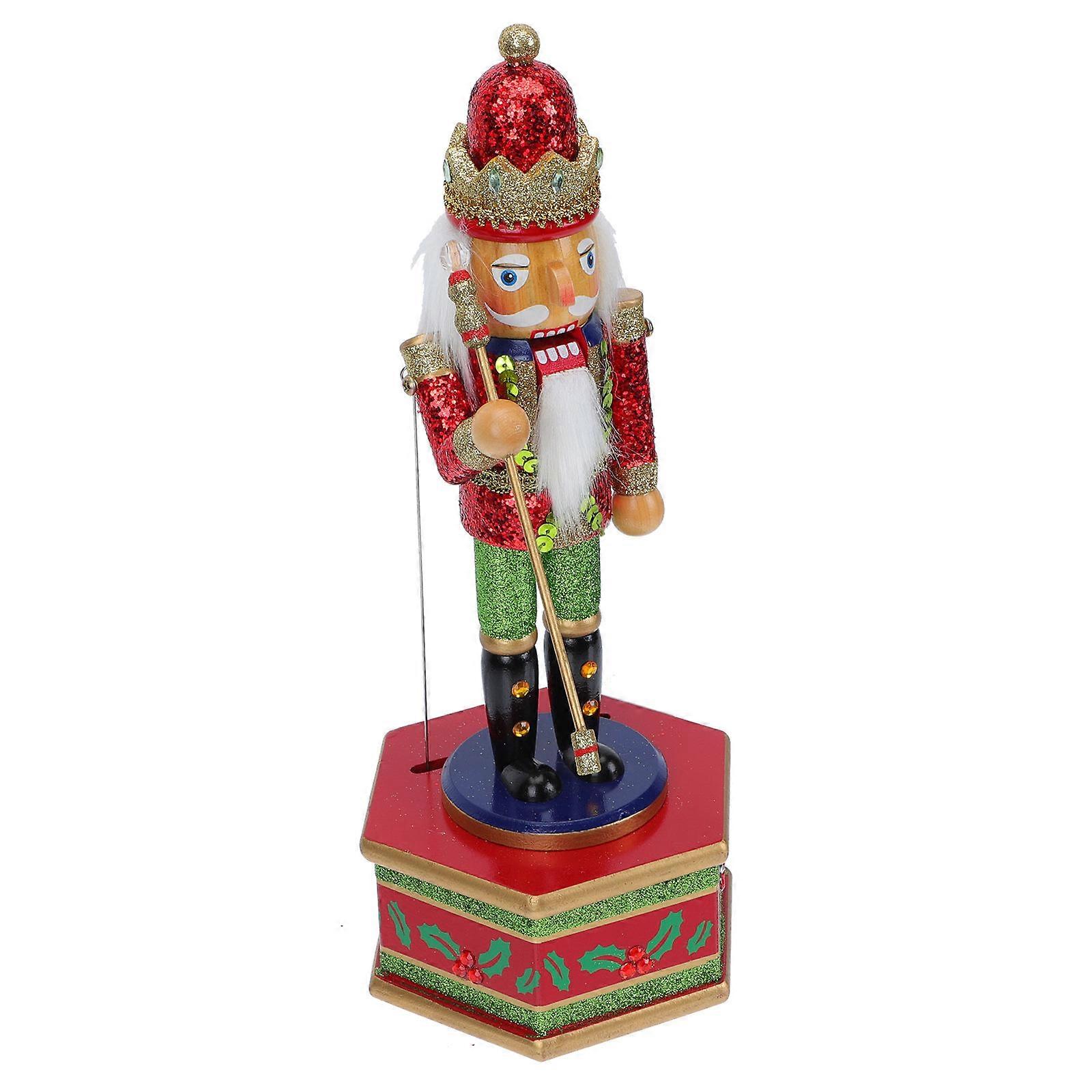 Creative Wooden Musical Box Nutcracker Desktop Ornament For Bedroom Living Room Study Office 1Set