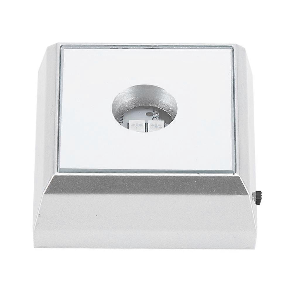 Square LED Lamp Base Stand Holder for Crystal Acrylic Statue Display Silver (Colorful Light)