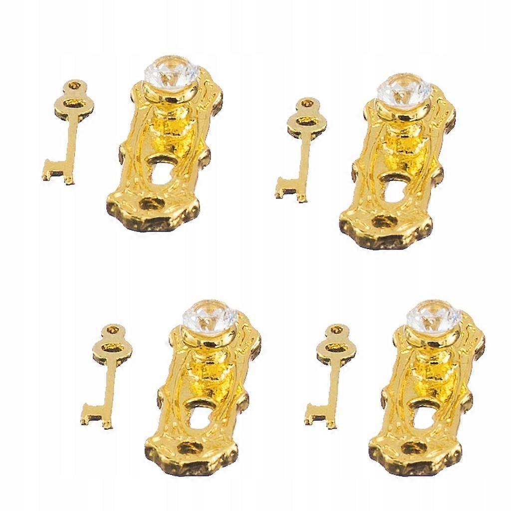 Set Of 4 Pieces Dolls House Miniature Door Lock With Crystal Keys 1/12