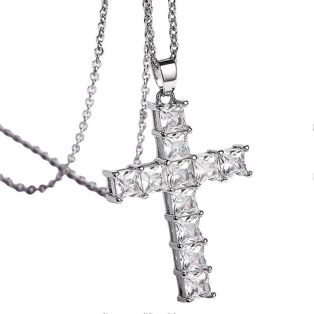 Crystal Cross Pendant Necklace Chain Alloy Zircon Neutral Style
