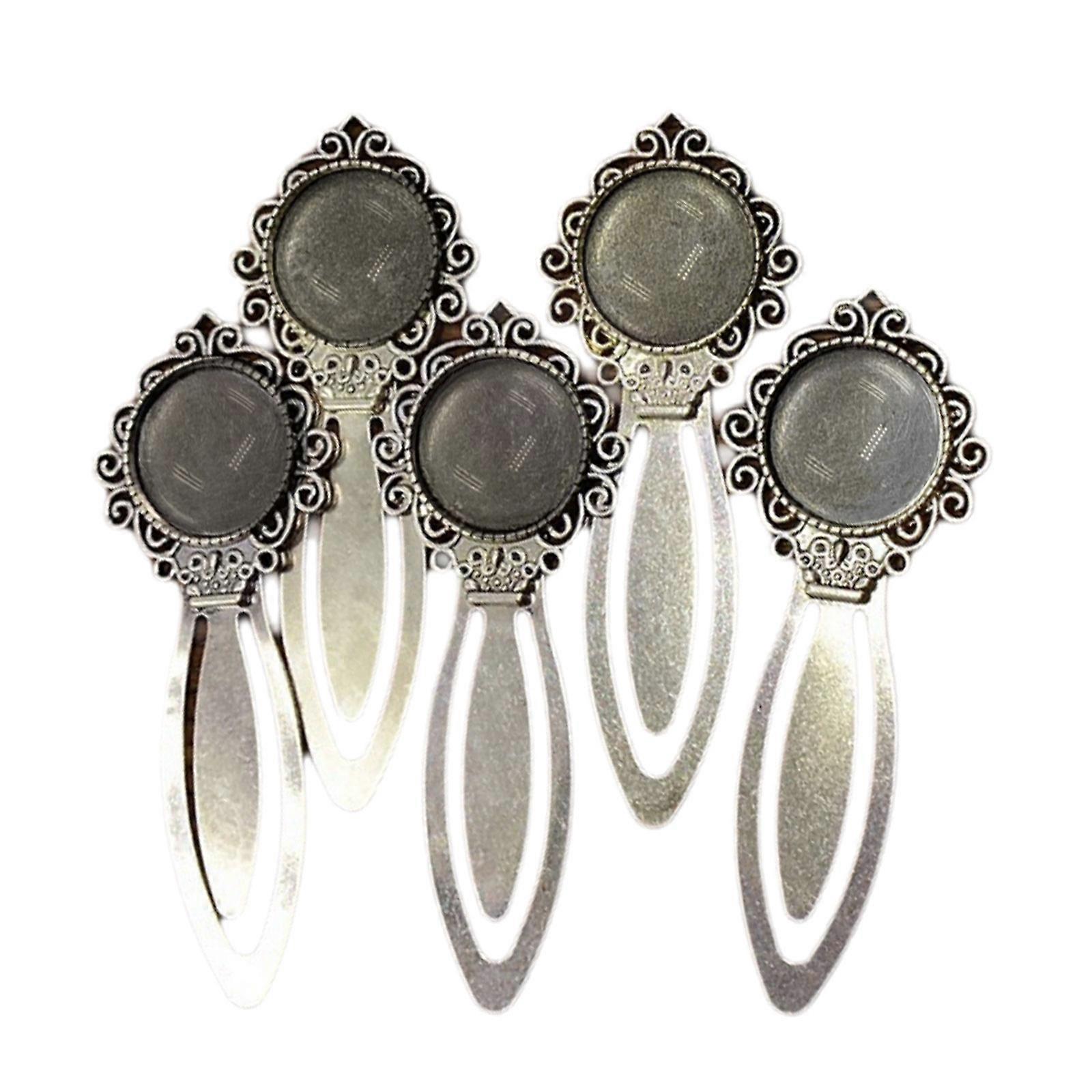 5Pieces Antique Bookmarks with Crystal Stone Graduation Present for Teacher Student Book Lover Metal Bookmarks Page Clip Antique Silver