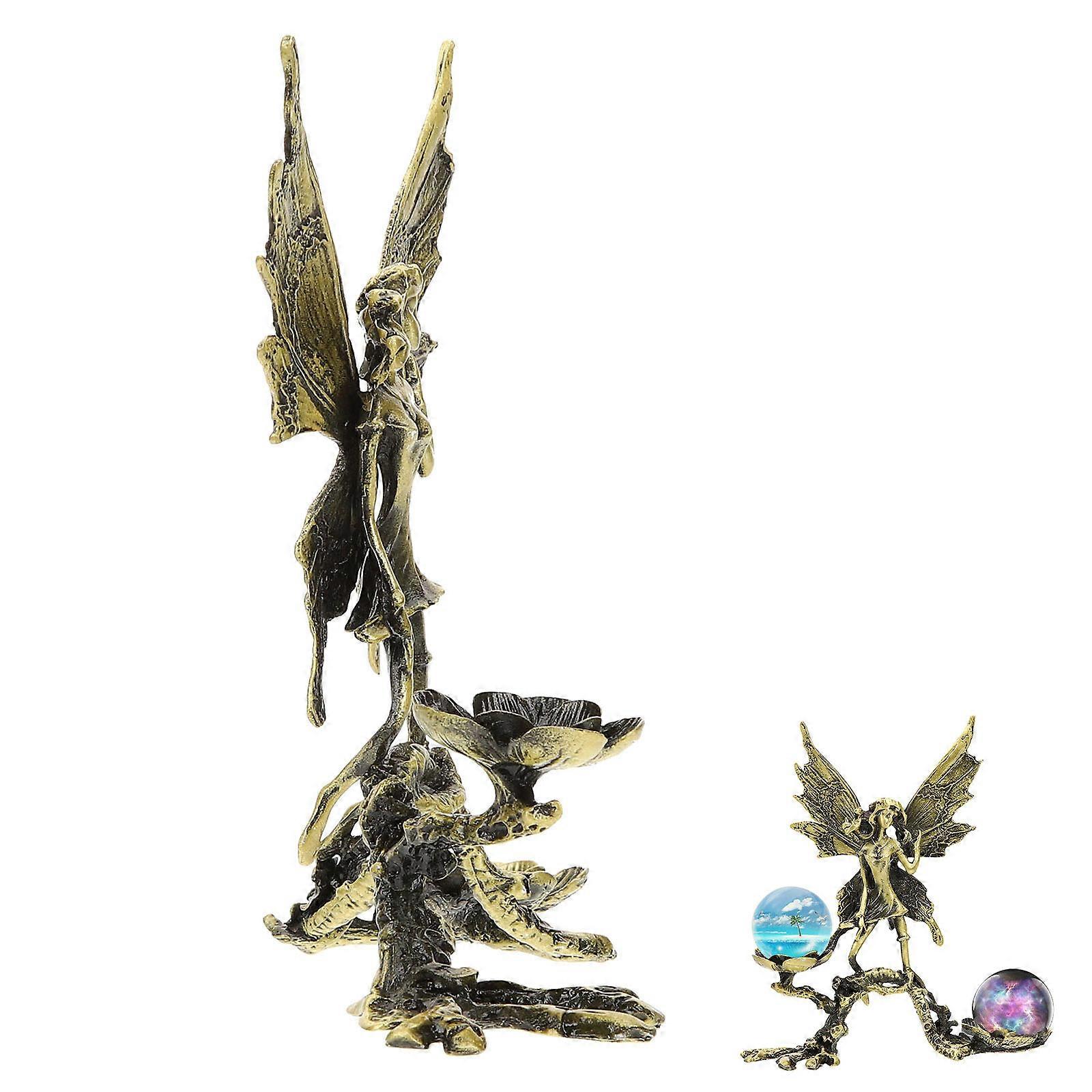 Crystal Sphere Holder Vintage Alloy Angel Style Crystal Ball Stand Home Decoration Golden 13X12CM Display 1Pcs