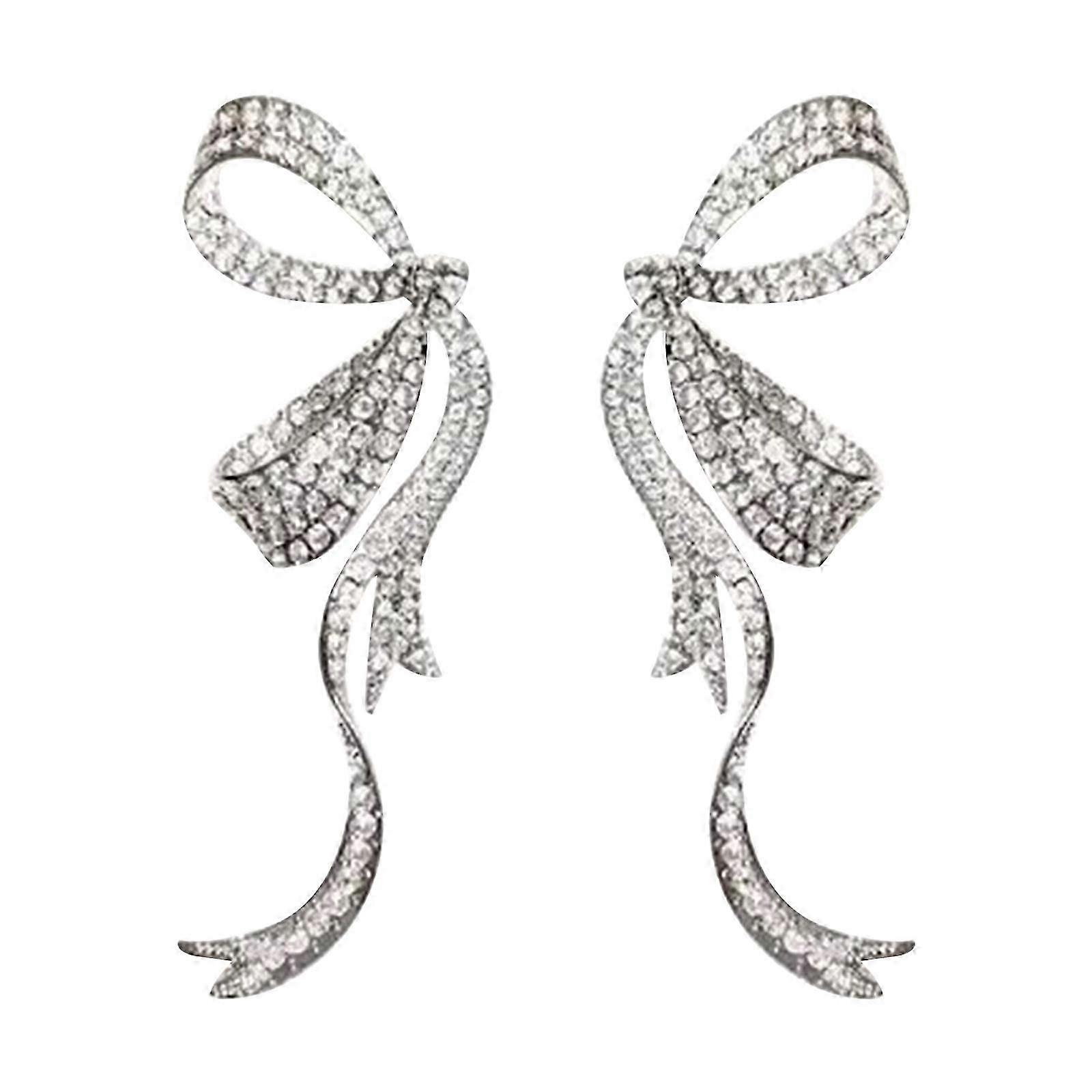Crystal Diamonds Bowknot Ribbon Trend Earrings Niche Design Sense Geometric Earrings Temperament Sweet Ear Jewelry