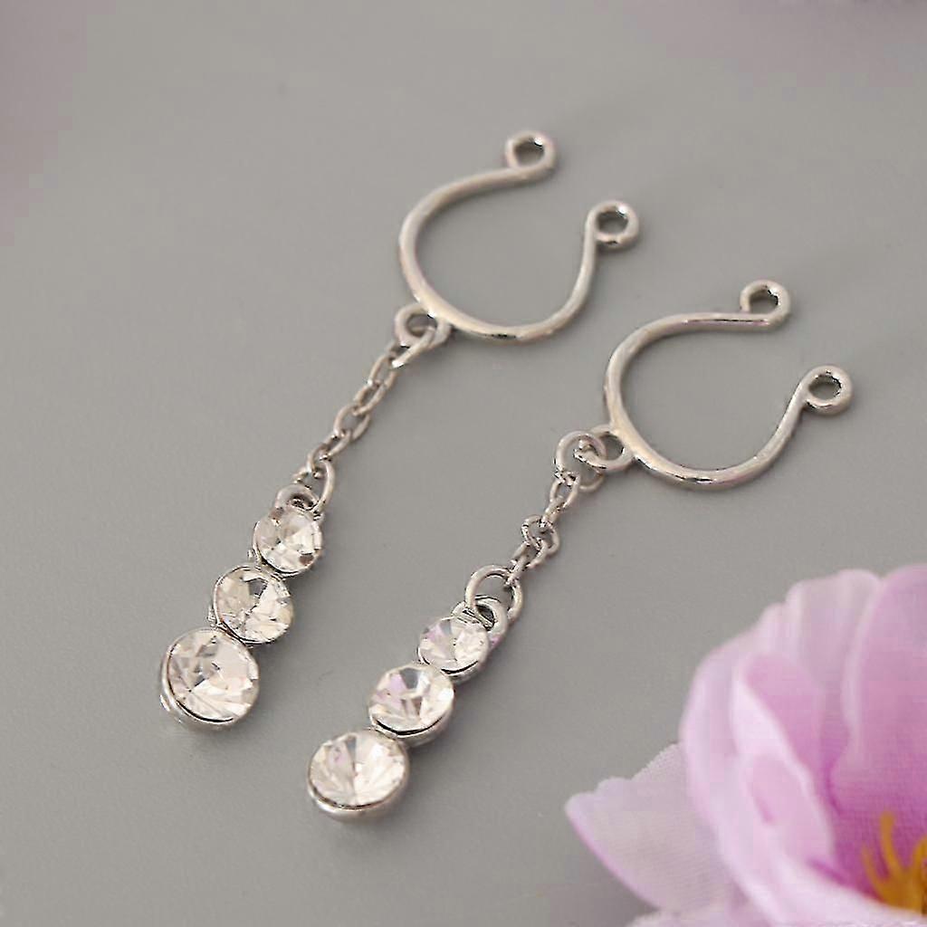 2pcs Fake Nipple Rings with Crystal Tassels Dangle Non Pierced Ring