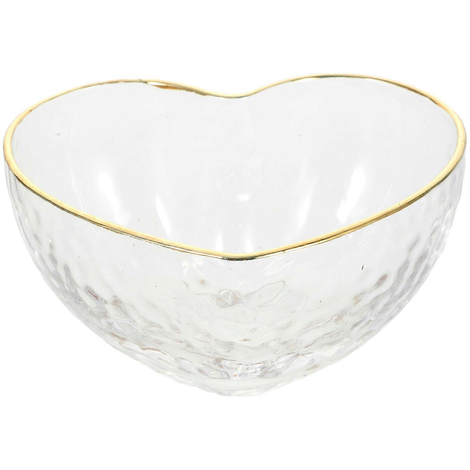 Crystal Dessert Bowl Glass Heart Bowl with Golden Trimming for Serving Fruit Salad Snack