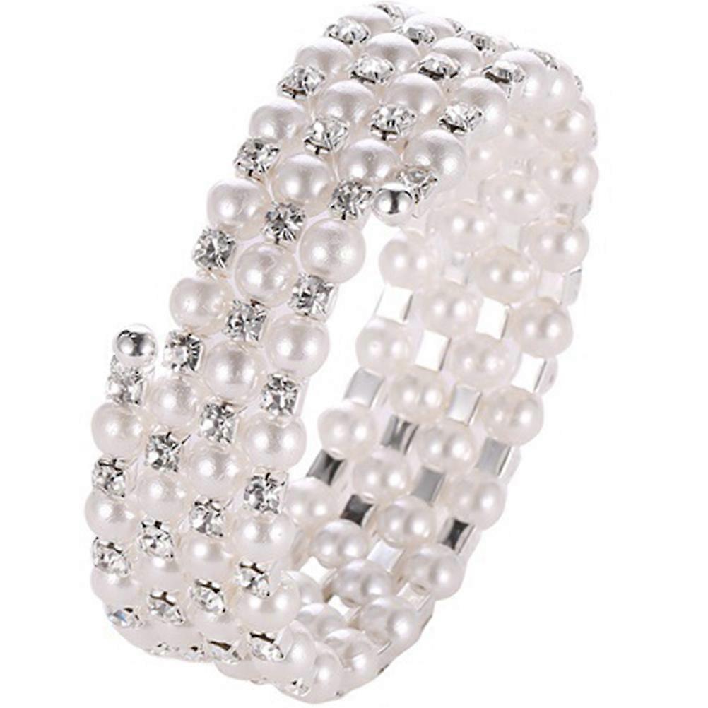 Crystal Bangle Bracelets Women's Party Jewelry Stretchy Wrist Decor White 6.5x6.5CM 1Pcs