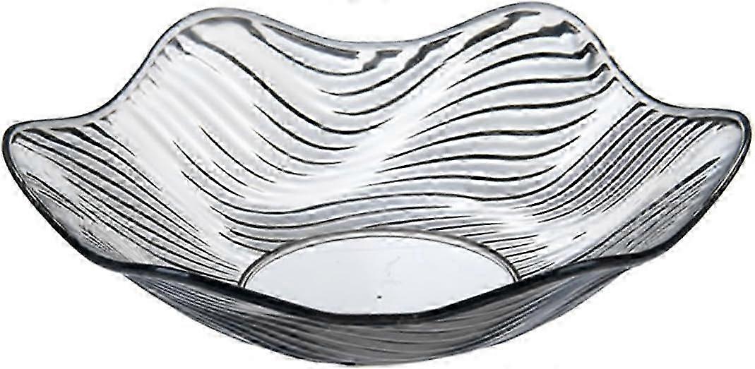 Crystal Fruit Plate, Clear Salad Bowl, Wavy Edged Dessert Platter - Grey