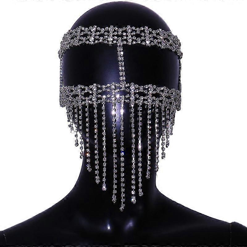 Crystal Veil Mask Rhinestone Tassel Face Mask Belly Dance Masquerade Headwear