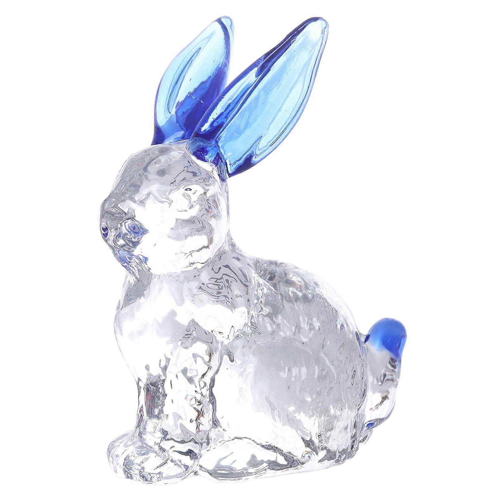 Crystal Animal Figurine Clear Glass Blue Rabbit Statue Easter Decor Collectible For Home Office Garden