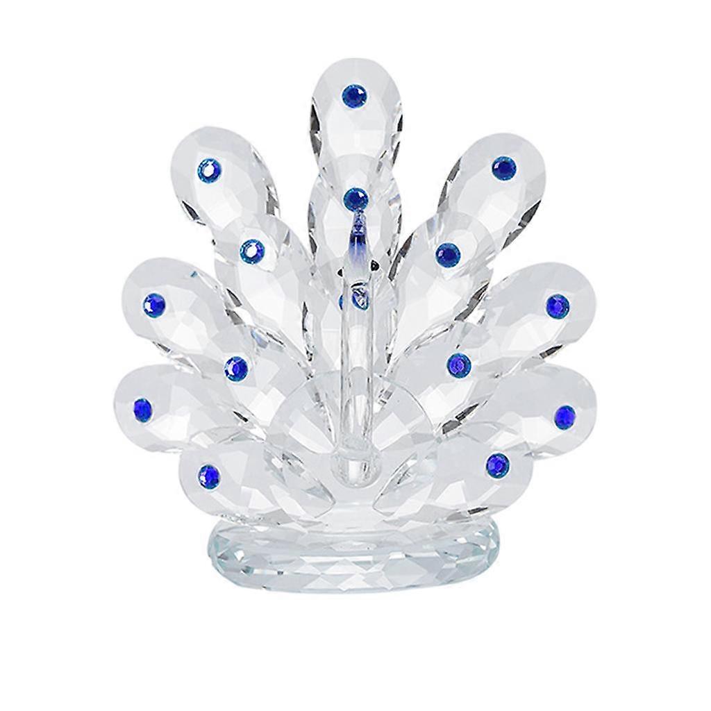 Crystal Peacock Figurine Clear Glass Animal Sculpture Statue Miniature Crystal