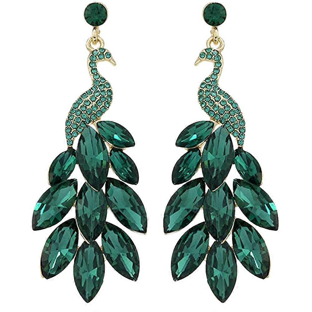 Vintage Peacock Dangle Earrings with Crystal Decor – Elegant Aesthetic Jewelry for Women, Perfect for Daily Wear, Parties, and Special Occasions