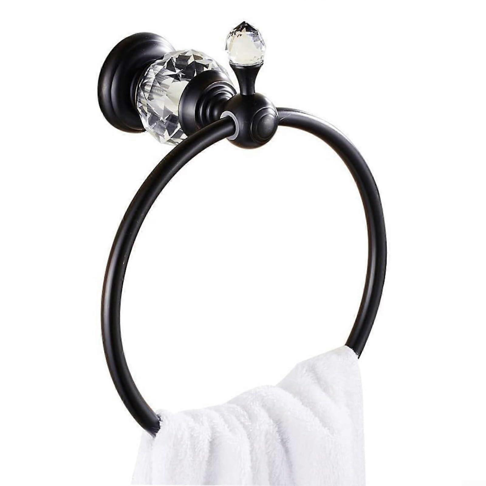 Crystal bathroom towel ring, wallmounted, zinc alloy, polished finish, includes screws, round black.