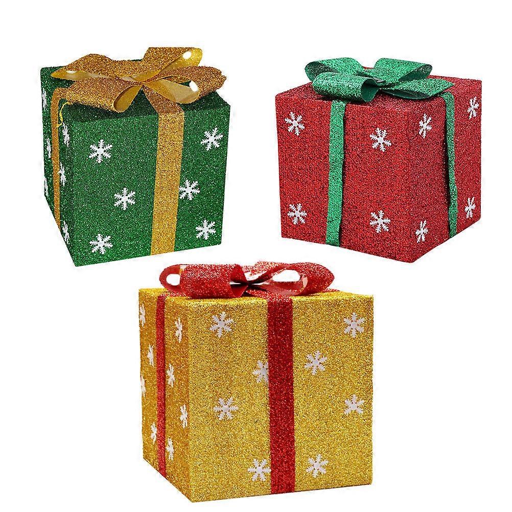 Christmas Celebration Gift Box Ornaments for Yard Decor 3Pcs Pvc Assorted Color