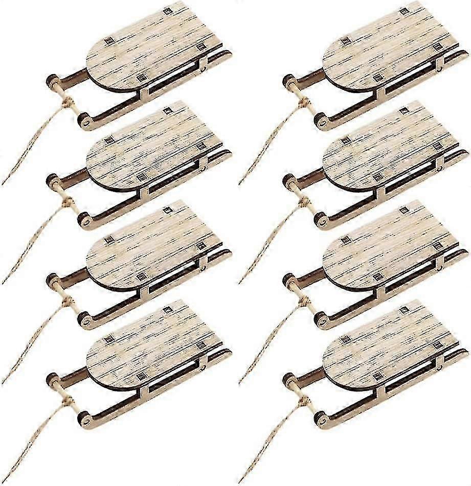 Christmas Sleigh Ornaments Mini Sleigh Embellishments Miniature Wooden Sleighs(8pc)