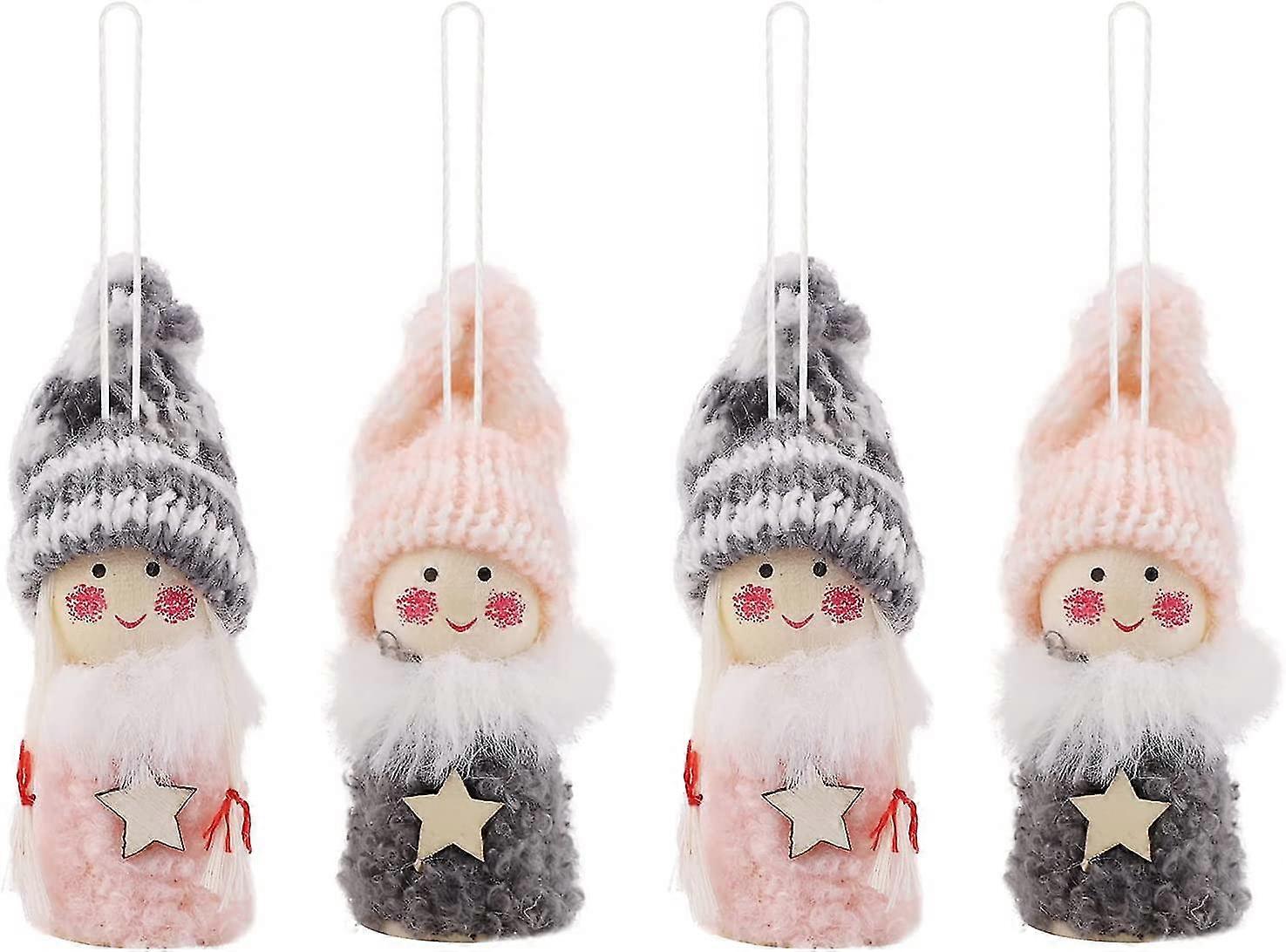 Christmas Plush Angel Pendant, 4 Pack Mini Wooden Christmas Trees Elves Doll Hanging Decorations Pendant For Christmas New Year Party Gift Home Decor