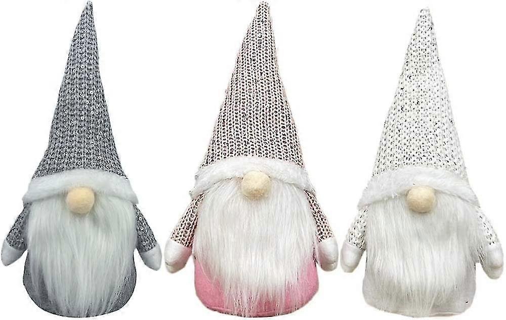 Christmas Plush Gnomes Swedish Tomte Santa Claus Elf Ornaments Christmas Decoration Gifts (gray+pink+white)