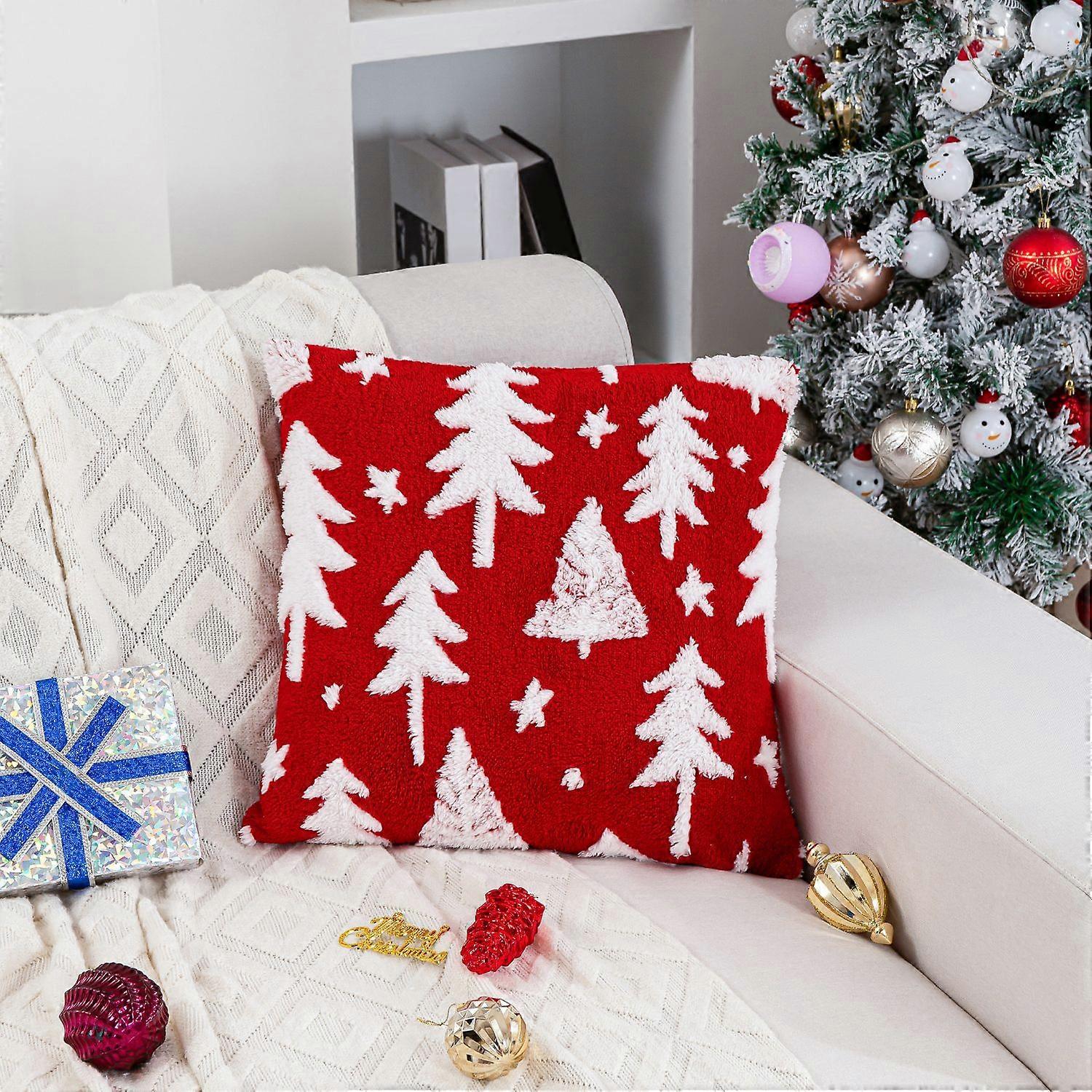 Christmas Plush Pillow Cover Christmas Tree Snowflake Santa Claus Jacquard Pillow Fashion Simple Sofa Cushion Cover