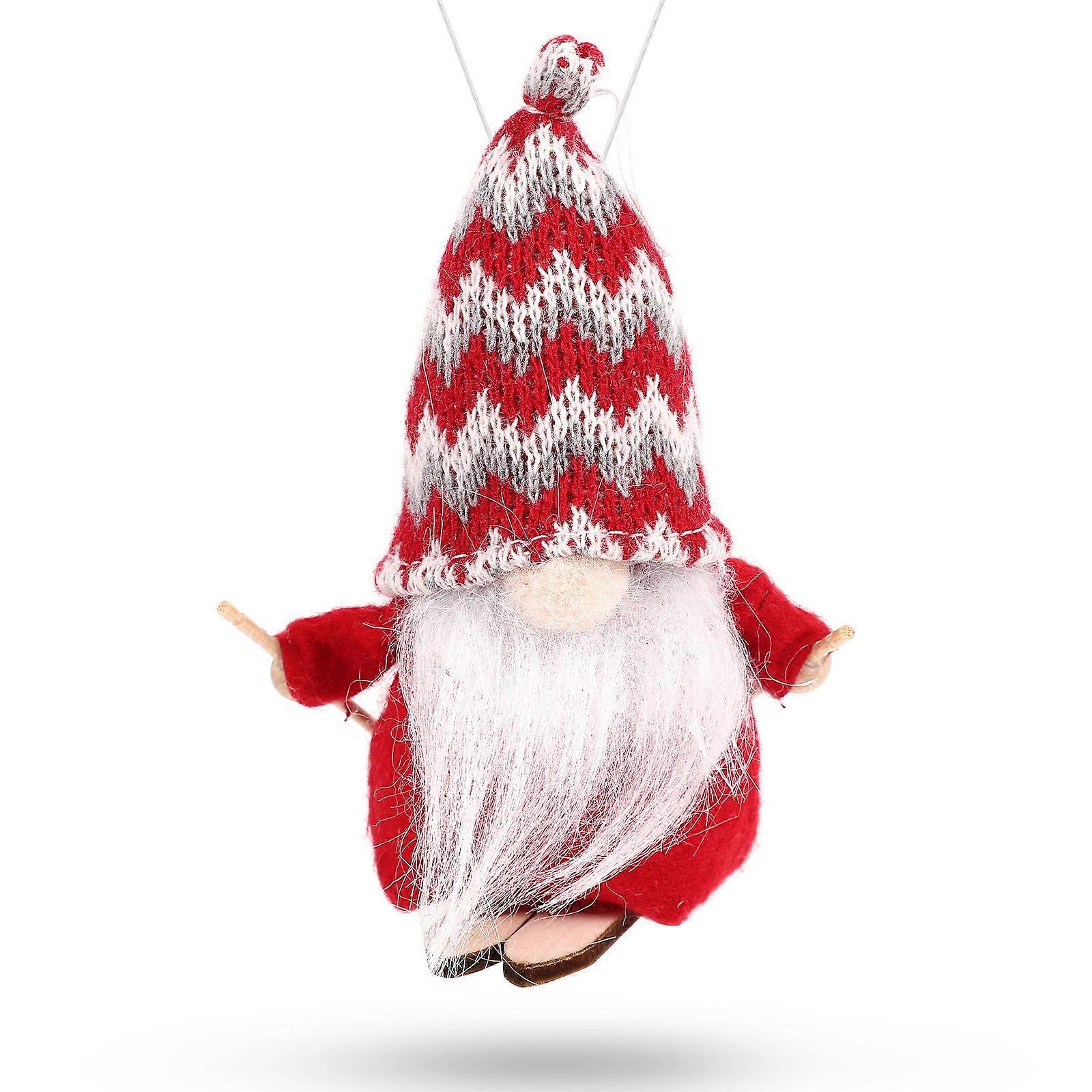 Funny Gnomes Hanging Decoration with Vivid Skiing Posture for Christmas Festive Dwarf Decor Red Non Woven Fabrics Wood 4 5 Inches
