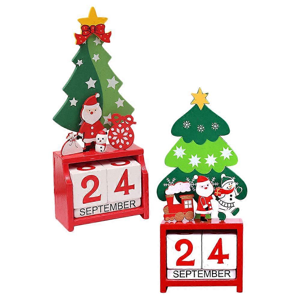 Christmas Celebration Wooden Calendar Accessory Festive Atmosphere Desktop Decoration Small Ornaments 18.5x7.5cm 2Pcs
