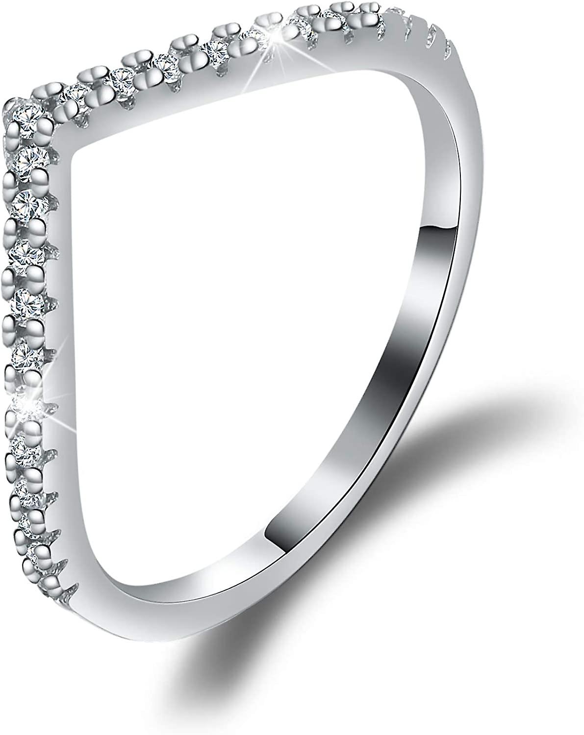 ?Gifts for Christmas?18K Gold Plating 925 Sterling Silver Ring Cubic Zirconia V Rings Simulated Diamond CZ Chevron Rings for Women and Girls