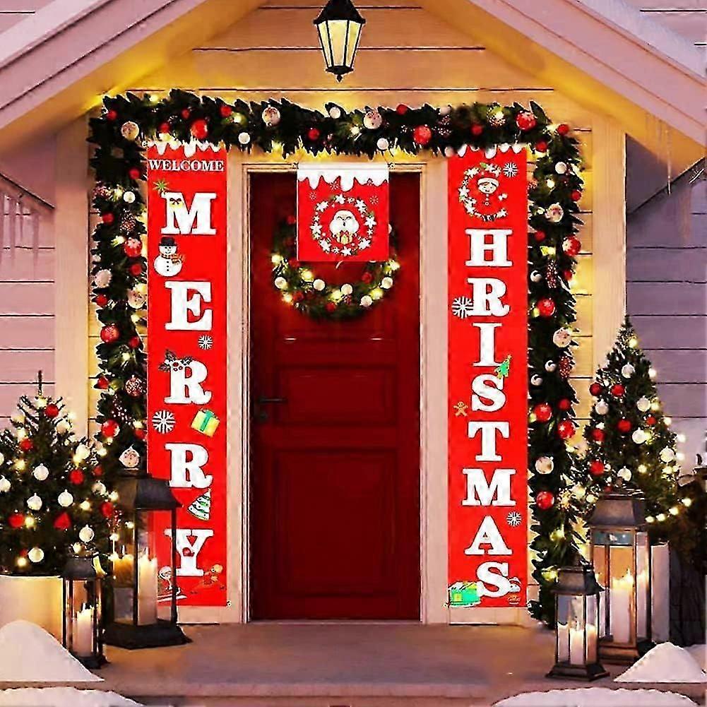 [Durable and Reusable] With high quality polyester fabric, unique design, various patterns, full of Christmas flavor, durable, it can be folded for storage, easy to carry and reuse for next year. The hanging banner measures approximately 150x20cm.[Christmas Design] There are many red and green Christmas designs on the holiday banner. Like Santa Claus, Christmas gifts, etc. There are also the white letters of "Merry Christmas". Help create a unique atmosphere of joy, fun and celebration. Make your Christmas party unique.[Easy to Install] Includes an attached top bar to hang on your porch, doorway, or driveway. Each banner flag comes with 2 eyelets on the bottom so you can attach weights so it won't blow away in the wind. Welcome your guests home or to your party with this unique flag for Christmas or New Year's Eve.[Christmas Decoration] These Merry Christmas signs are the perfect way to add a warm festive atmosphere to your home with this bright and colorful Merry Christmas hanging banner, warm winter greetings. Decorate your home with our banner and fill your home with Christmas atmosphere. [Perfect Christmas Decoration] Merry Christmas banners are very suitable for decorating Christmas parties. The banner can be hung in many places, both indoors and outdoors. Like gardens, living rooms, walls, fences, doors, branches. Or as a background for tablecloths and photos to create a more festive atmosphere.
