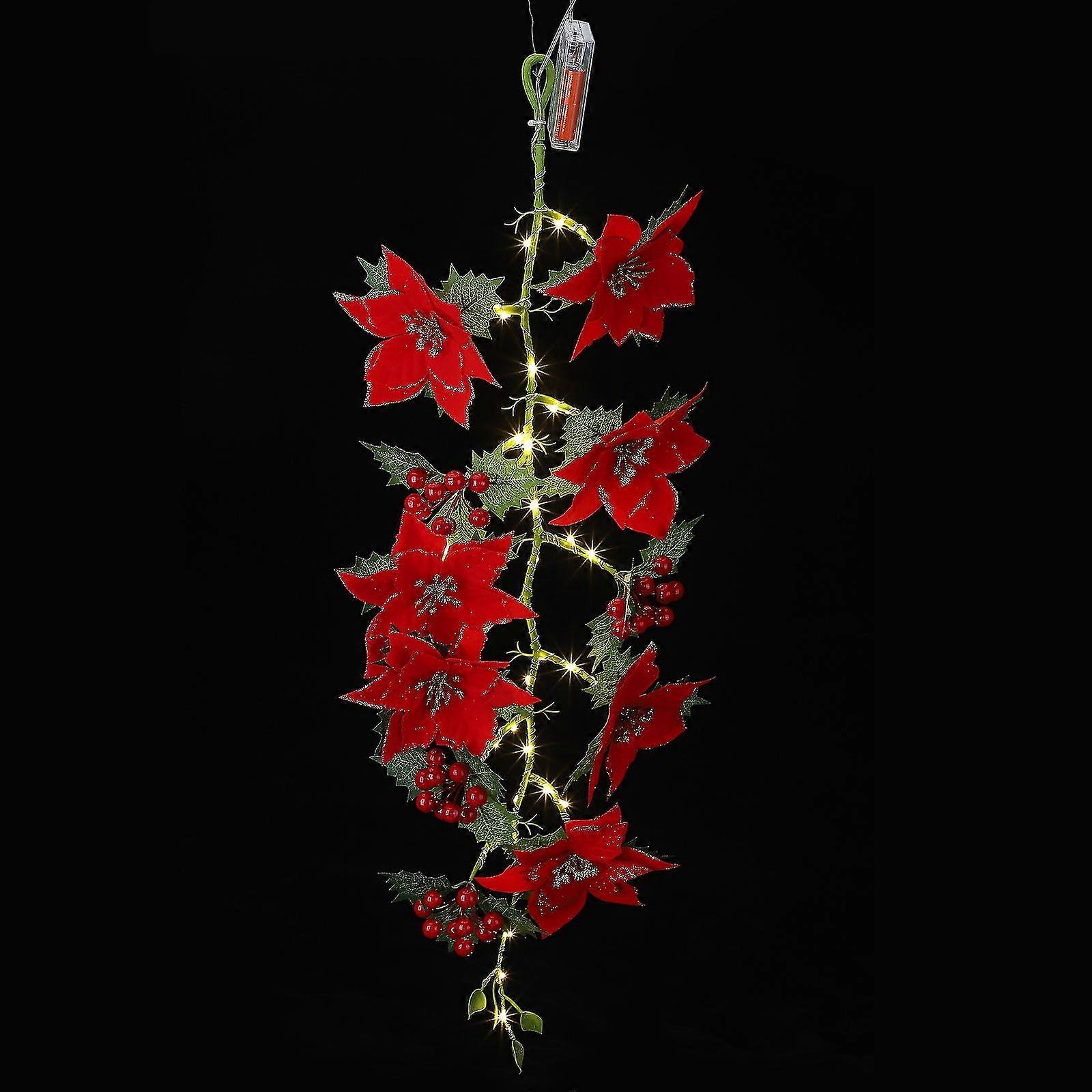 Christmas Hanging Decorations String Lights Durability Romantic For Party Home Artificial Poinsettia