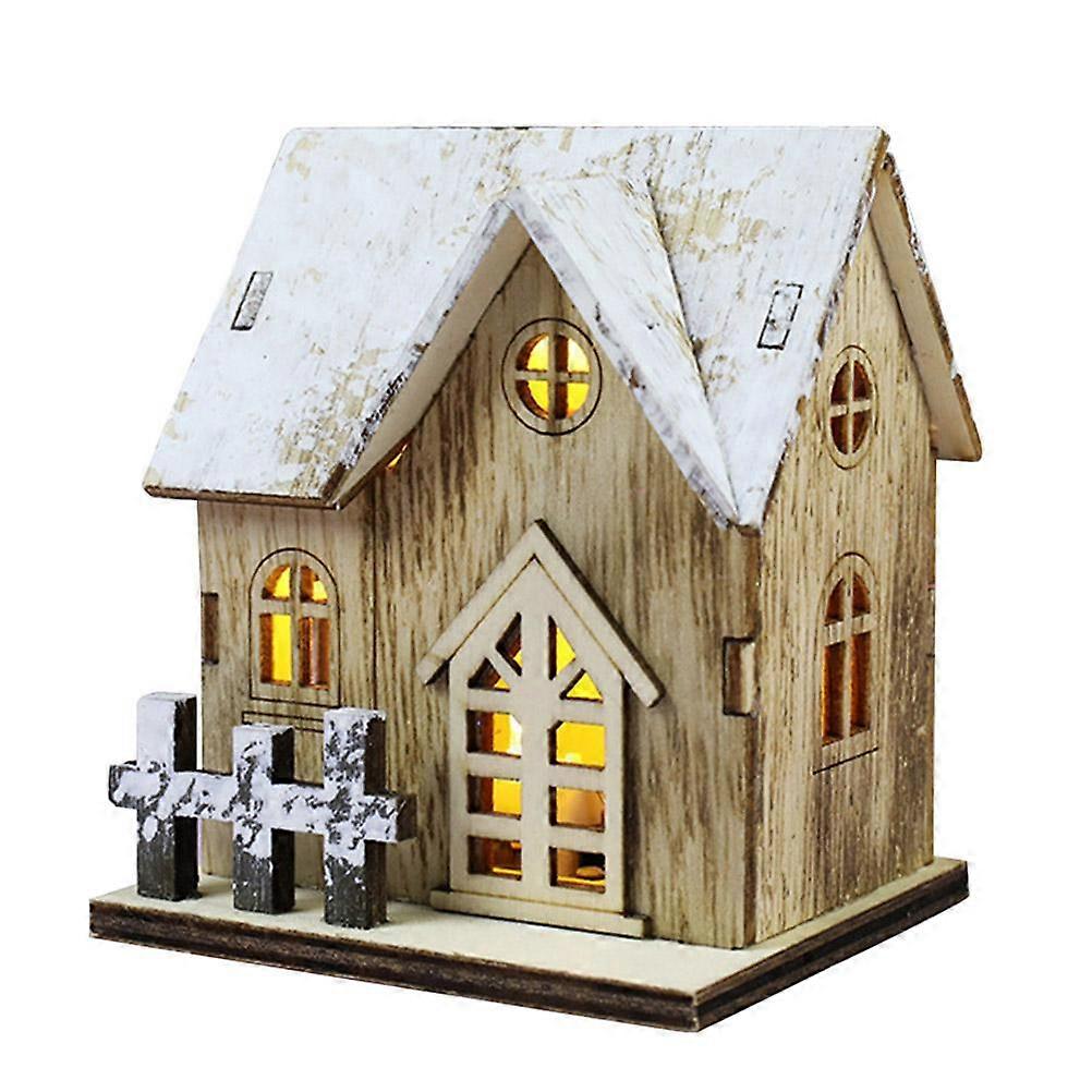 Christmas Luminous Wooden House Luminous Hut Wooden Desktop Ornaments for Offices and Shops