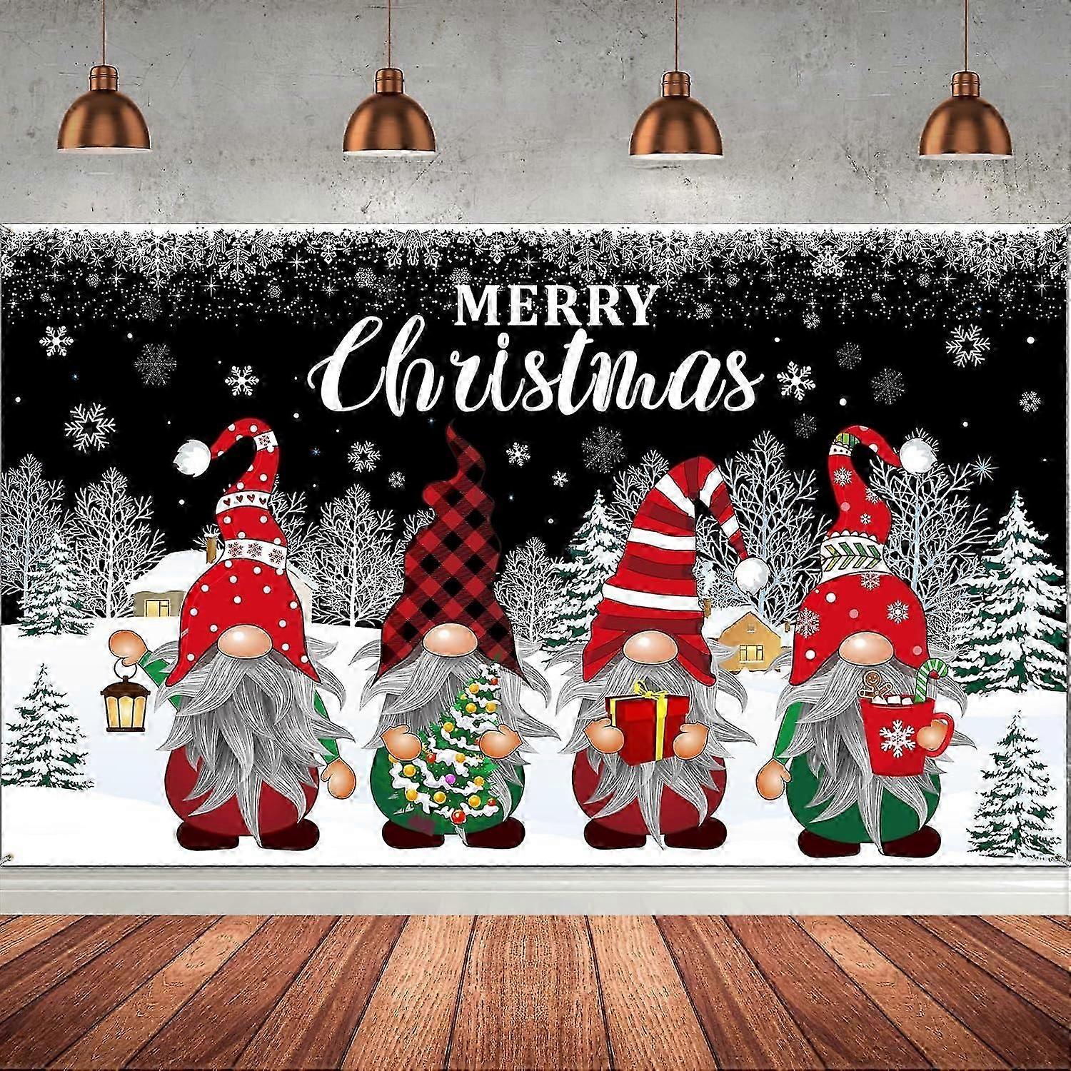 Christmas Background Banner, Gnome Banner Christmas Party Background Decoration Photography, Holiday Photo Booth Props Wall Decoration Winter Supplies