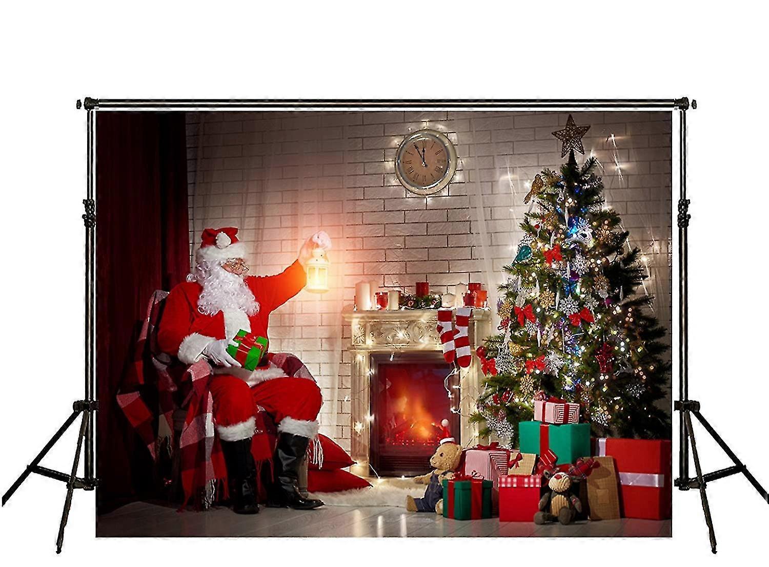 Christmas Backdrop 150x230 Cm Red Santa Claus White Brick Wall With Sparkly Christmas Tree Background For Photography
