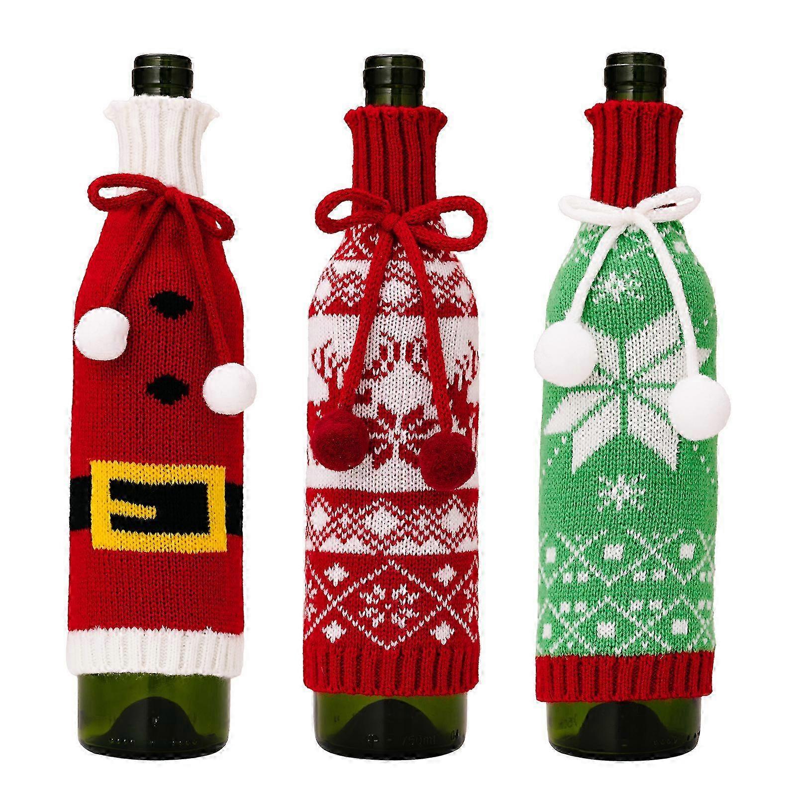 New Knitted Wine Bottle Covers with Christmas Decorations: 3-Piece Set of Woolen Champagne Wine Covers with Snowflake Design for Festive Season