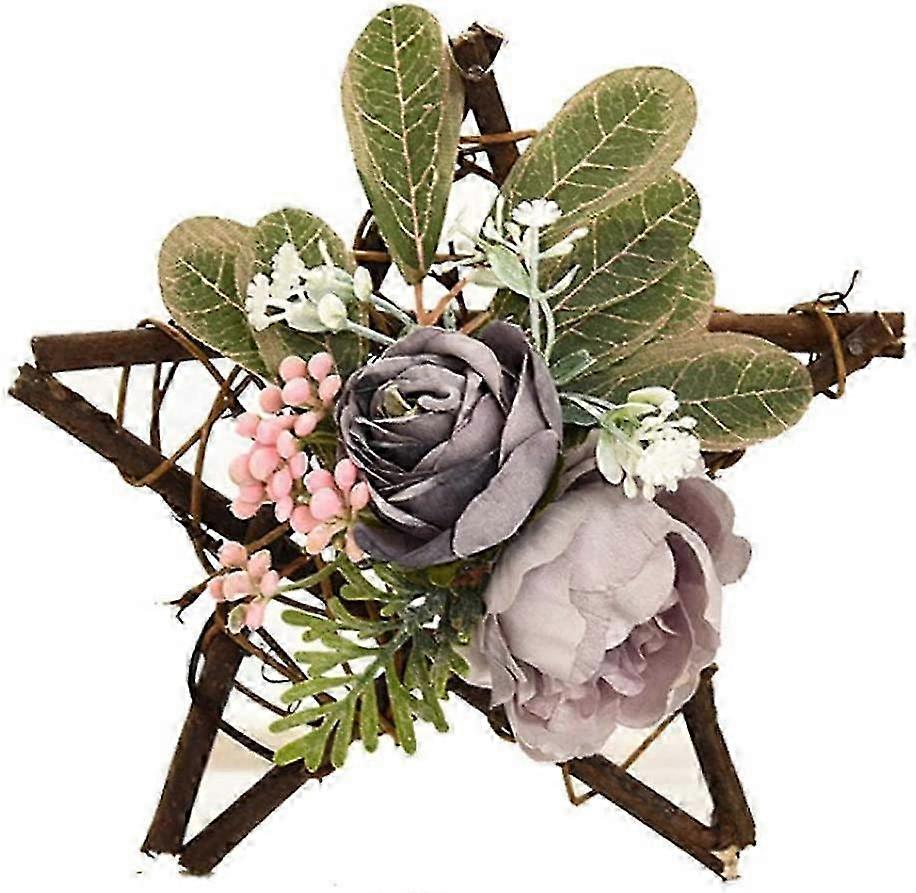 Christmas Decorations: Mini Artificial Flowers with Five-Pointed Star Garland Cane Circle Scene Supplies