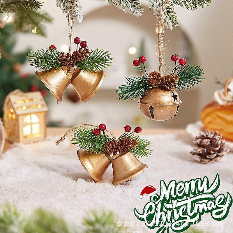 Christmas decorations small bell pendants bow felt Christmas tree door hanging ornaments wind chime atmosphere layout