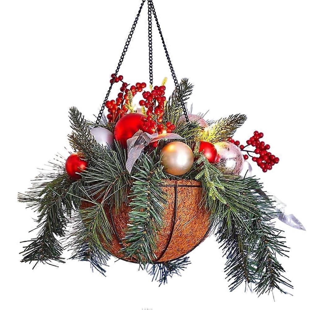 Christmas Enchantment, Pre-Lit Artificial Hanging Basket, Red Berries Pine Cone Decor, Fireproof High-Quality PVC, For Indoor Outdoor Decoration