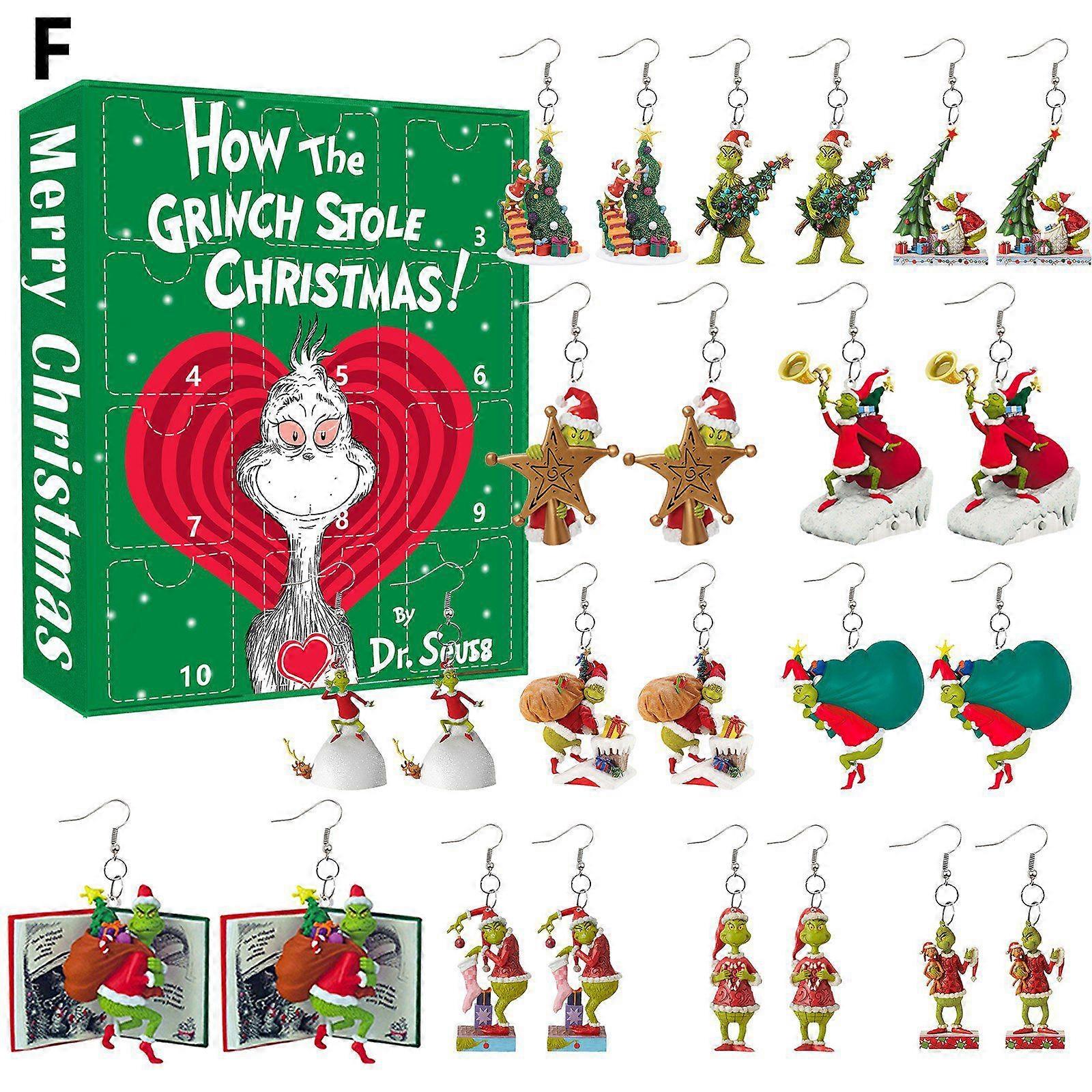 Christmas Advent Calendar Christmas Grinch Countdown Blind Box Creative Cartoon Green Monster Popular Earrings Earrings