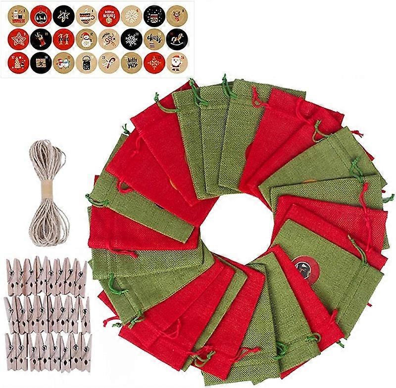 Christmas Advent Calendar Bag Set Linen Bags Stickers Wooden Clips Rope Kit