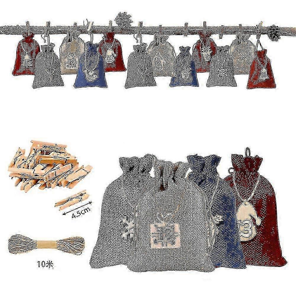 Christmas Advent Calendar Bag Set 24days Gift Bag With Wooden Pendant