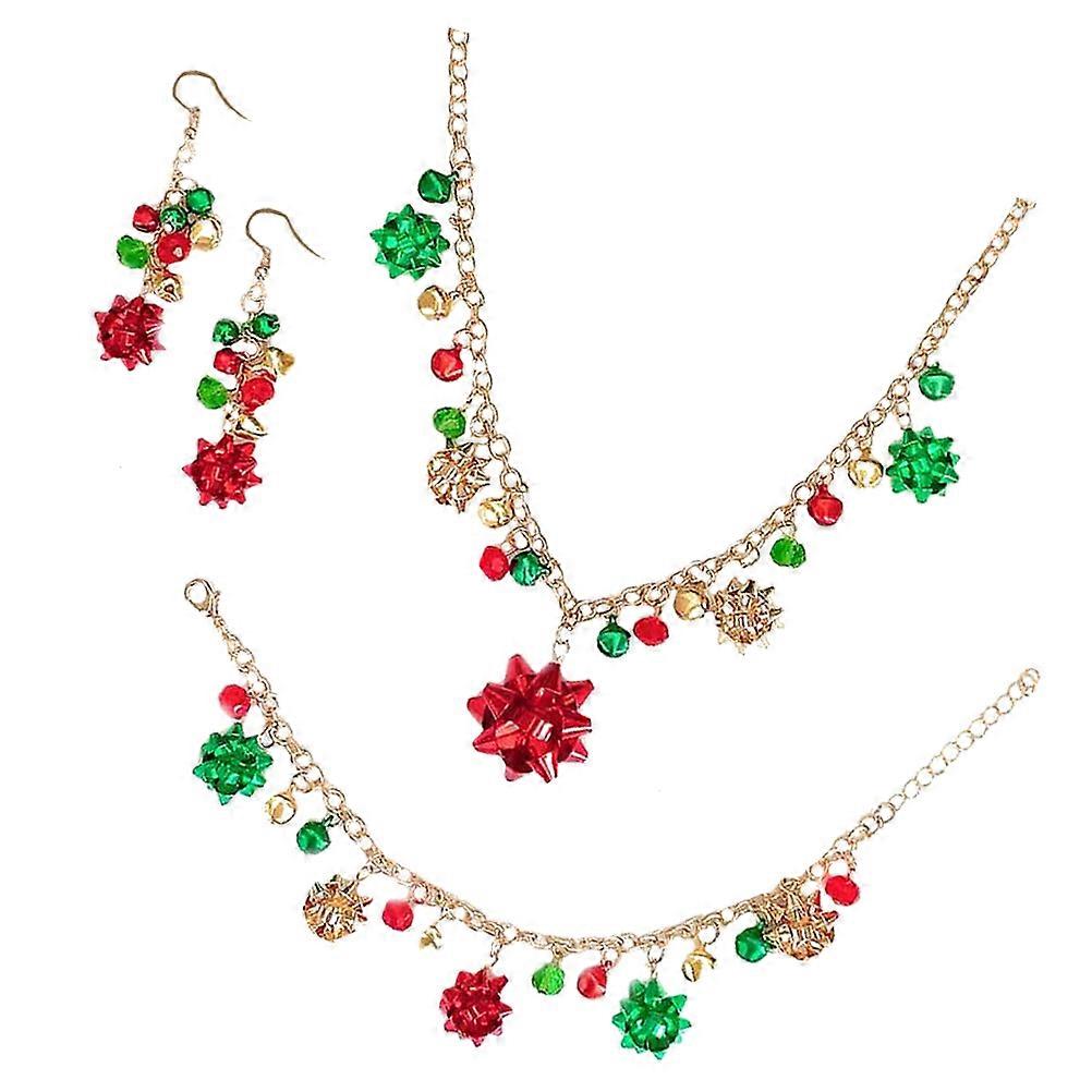 Christmas Earrings Flower Bell Pendant Necklace for Decoration 1Set